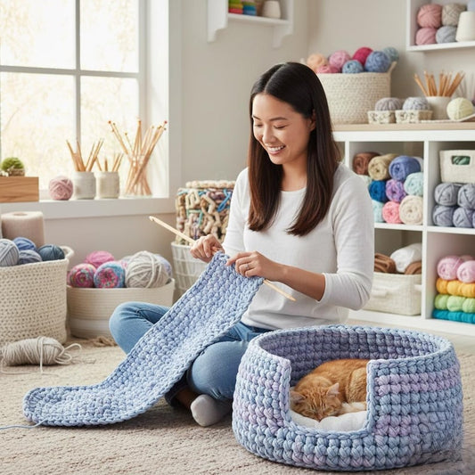 Crochet Cat Bed Pattern PDF – Stylish Pet Nest, Easy Chunky Yarn DIY