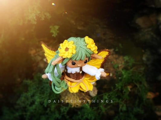 Amigurumi Doll Sunflower Fairy Crochet Pattern, crochet woodland doll pattern